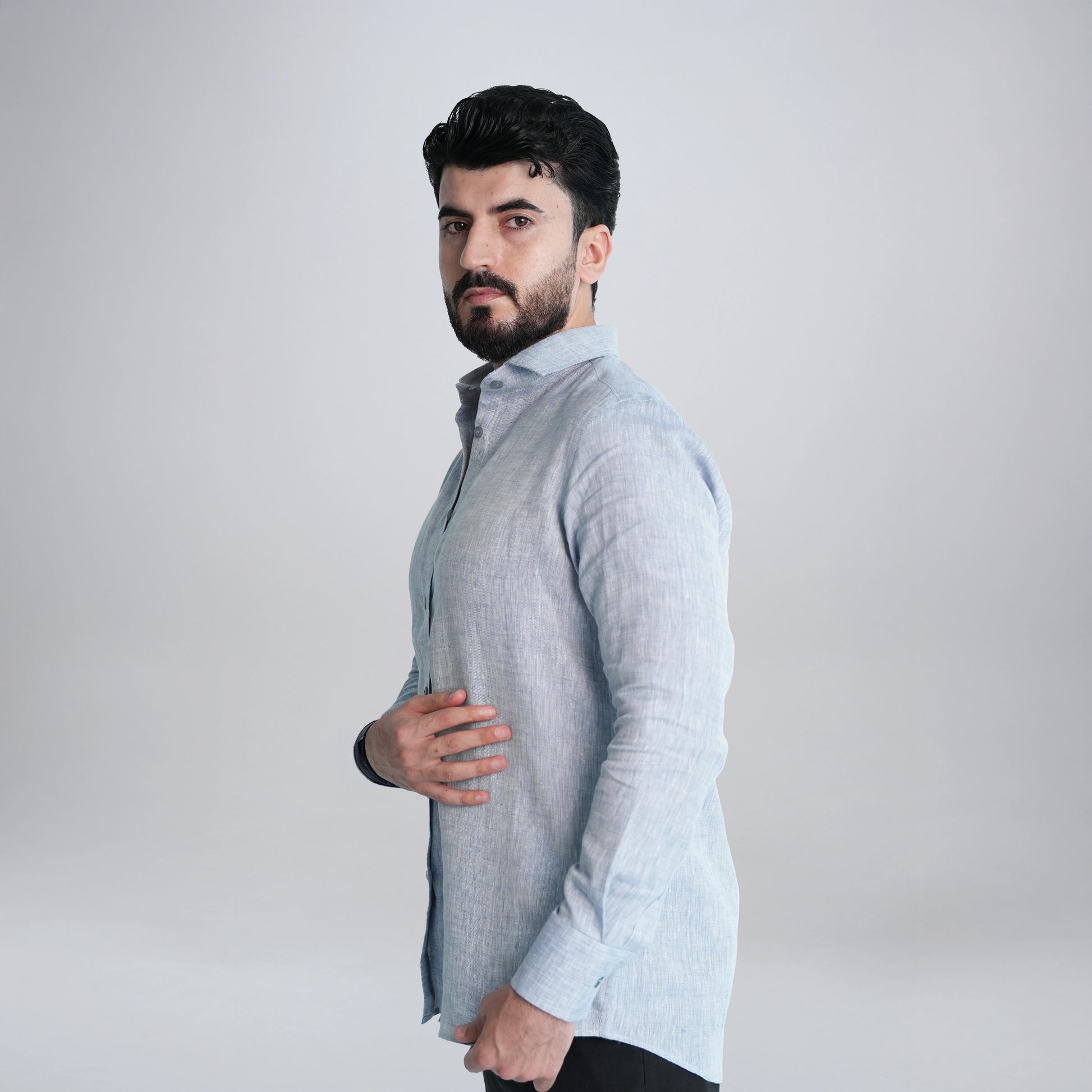 مصنوع من أجود أنواع ألياف الكتان الطبيعية، حيث يوفر الكتان الخالص 100% الذي نقدمه لك راحة لا مثيل لها وملمس خفيف الوزن وملمس أنيق. مثالي للمناخات الدافئة، فهو يبقيك بارداً وأنيقاً طوال اليوم. سواءً كنت تقوم بتفصيل كندورة أو قميص أو ملابس صيفية فإن هذا القماش يضفي أناقة راقية ومريحة على كل إطلالة. قماش متين وصديق للبيئة وناعم بشكل فاخر - مثالي للرجل العصري الذي يقدّر الراحة والجودة.